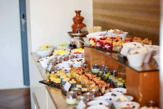 - Grosses Dessertbuffet mit Apfelstrudel und Schokoladenbrunnen