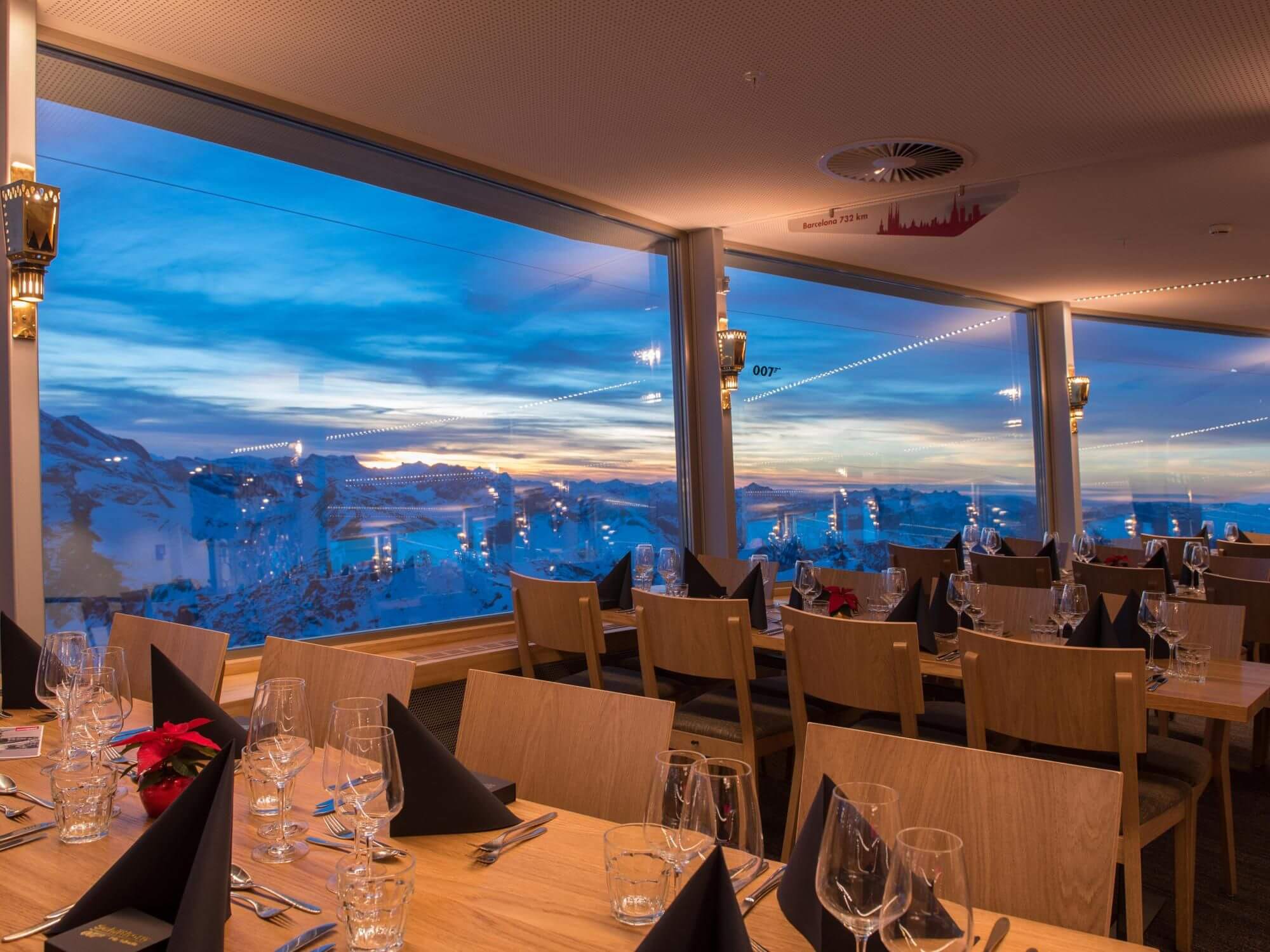Eine Tischreservation ist erforderlich unter www.schilthorn.ch/reservation.